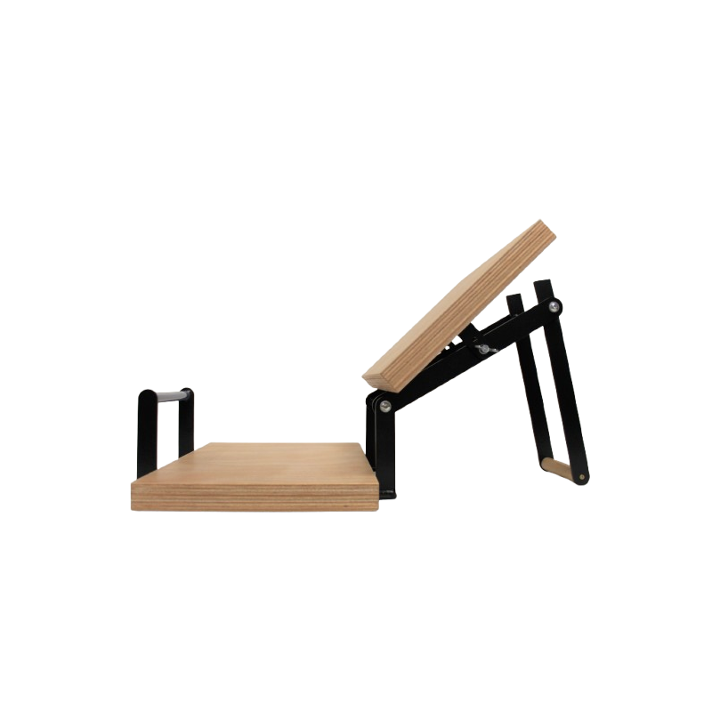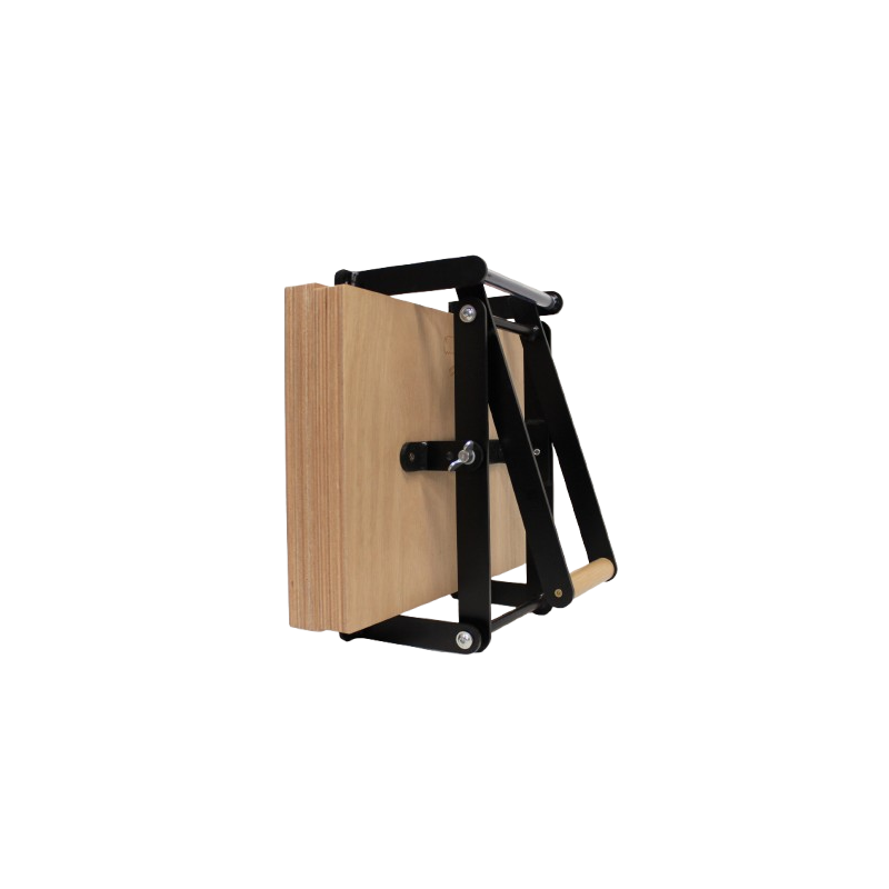 The press platens are made of 36 mm thick plywood. They have a semi-gloss three-coat polyurethane (PU) lacquer finish.