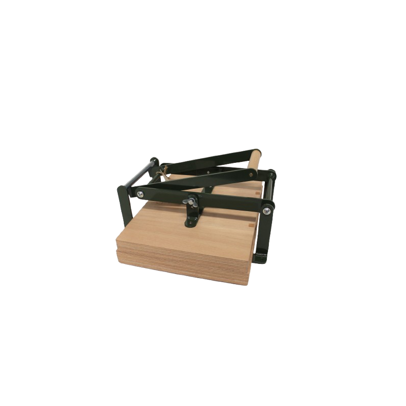 This press is suitable for plate sizes up to A3 (29,7 x 42cm) and can be used for linocut printing or woodcut printing (or soft materials such as gum), for pressing vegetable matter, for stamping paper, etc. The upper platen can be adjusted in height to accommodate thicker blocks.