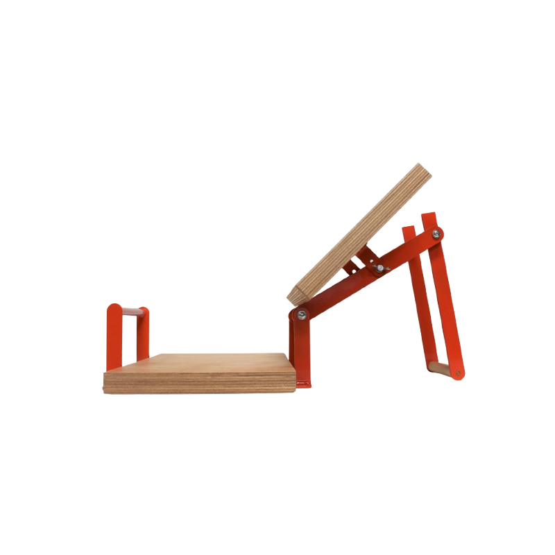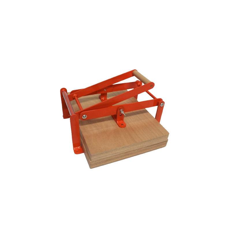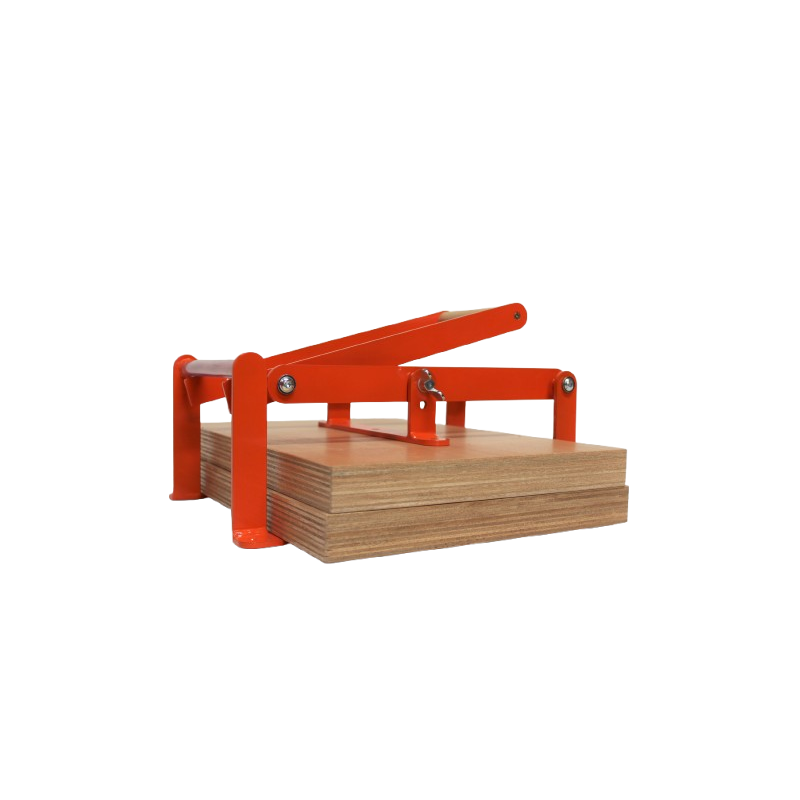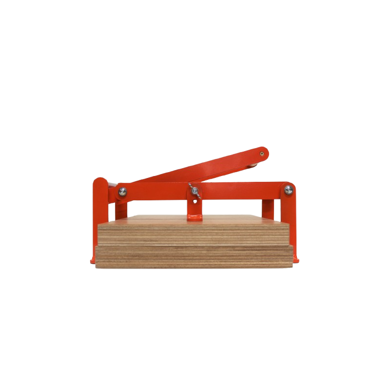 This press is suitable for plate sizes up to A3 (29,7 x 42cm) and can be used for linocut printing or woodcut printing (or soft materials such as gum), for pressing vegetable matter, for stamping paper, etc. The upper platen can be adjusted in height to accommodate thicker blocks.