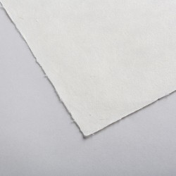 - A l’aide d’une éponge, appliquez la colle d’amidon au dos du papier fin, positionnez-le sur la plaque, colle vers le haut, puis placez le papier support.