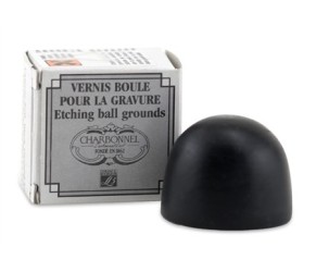 les vernis à graver, les vernis à retoucher, les vernis à recouvrir et les vernis à remordre. On différencie les vernis solides, généralement en boule à appliquer au rouleau ou au tampon sur planche tiède, et les vernis liquides à appliquer au pinceau à froid. Les premiers sont toujours plus résistants et permettent de disposer d’un plus long temps de travail sans risque d’écaillage.