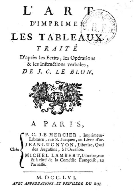 L'art d'imprimer les tableaux . Traité d'après les ecrits, les opérations & les instructions verbales, de J. C. Le Blon