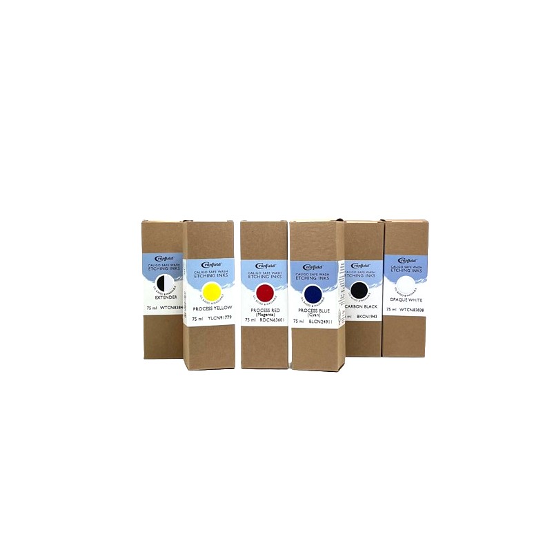 Set des encres de base, en tubes de 75ml, pour suivre un système de mélange des couleurs par volume.