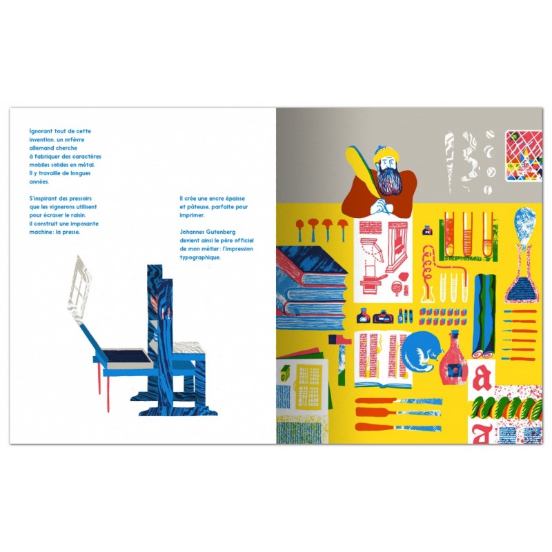 Après La lithographe, Gaby Bazin poursuit sa série d’album — entre beau livre et documentaire — sur les techniques d’impression.